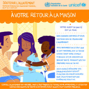 à votre retour à la maison votre agent de santé est là pour vous donner confiance et vous soutenir afin de poursuivre l’allaitement. vous rassurer sur le fait que le lait maternel est la seule chose dont votre enfant a besoin pour grandir en bonne santé pendant les six premiers mois de savie. vous aider […]